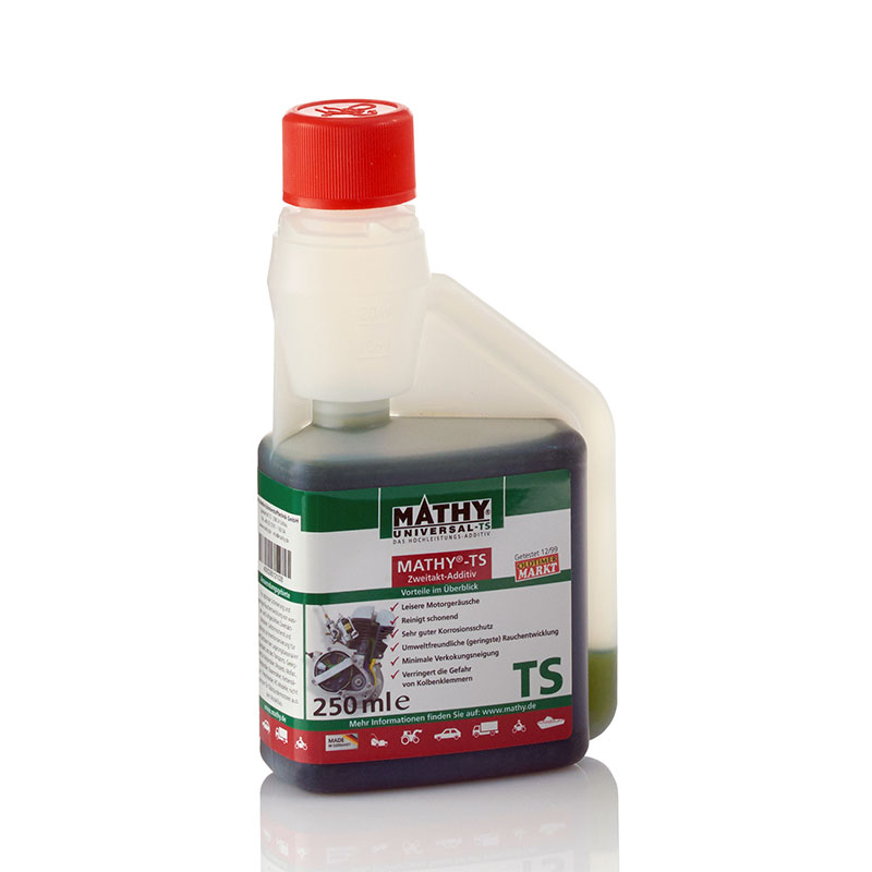 MATHY-TS Zweitakt-Additiv für Zweitakt-Motoren 250 ml | mathy.deLeisere Motorengeräusche und schonende Reinigung ✓ Sehr guter Korrosionsschutz ✓ Verringert die Gefahr von Kolbenklemmern ➡️ Beim Hersteller kaufenwww.mathy.deDass wäre ziemlich interessant, hab ich auch Zuhause stehen, nur was mich stutzig macht ist dass es definitiv eine "feste phase" hat, also Feststoffe im Additiv sind.