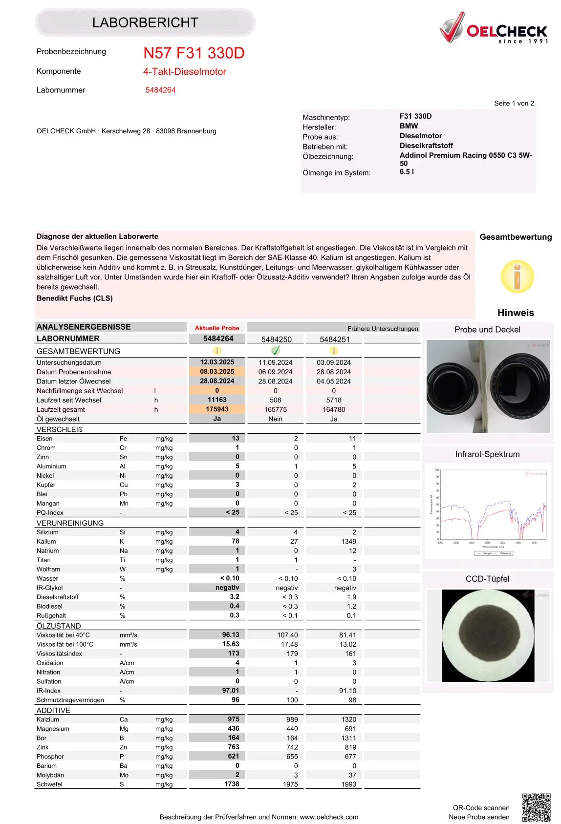 Mittlere Spalte: Addinol Premium Racing 0550 C3 5W50 - BMW F31 330D - "zero hour" / 500km