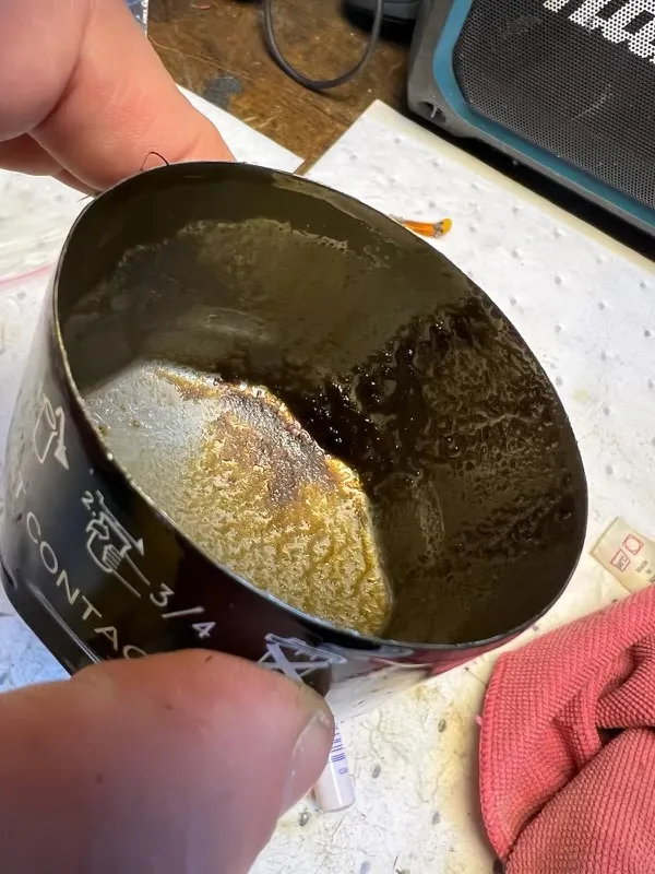 Wenn man das gelierte NP im empfohlene Verhältnis nochmal mit Motoröl ansetzen würde, könnte man das vorhergesagte Löseverhalten nachstellen. Aber ehrlich gesagt wäre mir der Ansatz aktuell zu groß (man muss ja auch was sehen können) und ich hätte danach sowieso Angst meine andere original verschlossene Flasche anzuwenden.