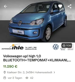 Wäre beim e-Up die Reichweite nicht so gering - würde ich den sogar in Betracht ziehen. Ein e-Up mit 500km Reichweite und in max. 30min wieder voll - gerne! Wirds aber nie geben.. gibt ja leider keine neuen Up!sis mehr ![]()