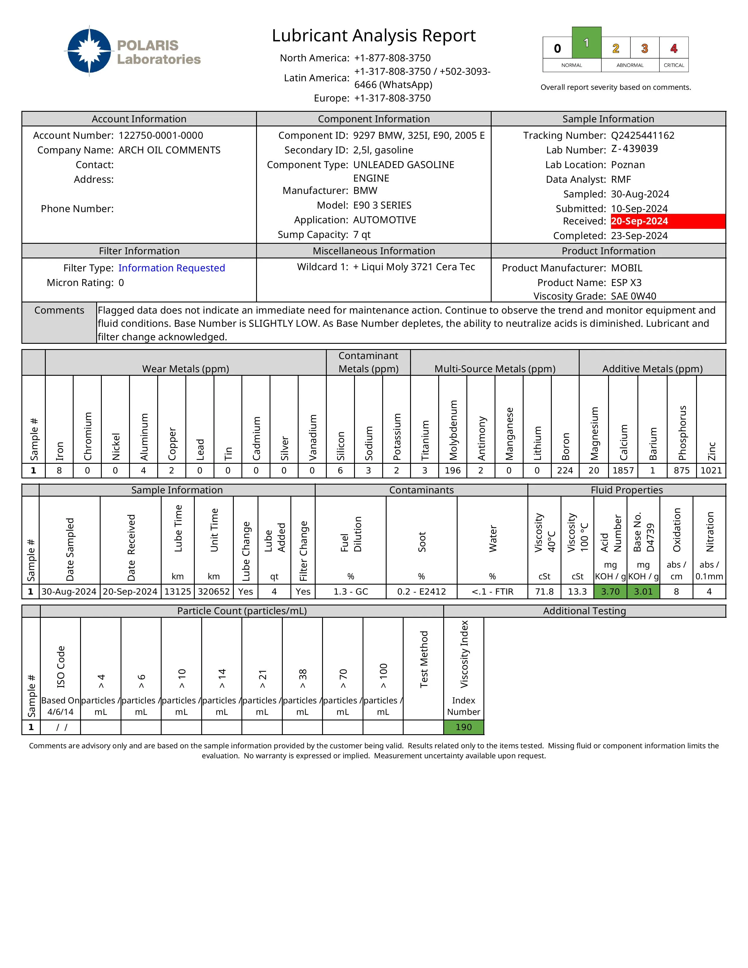 Fahrprofil: überwiegend Autobahn 100 km/hVorherige Analyse: Mobil1 ESP x3 0W-40 - BMW E90 325i N52B25 - 13.125km