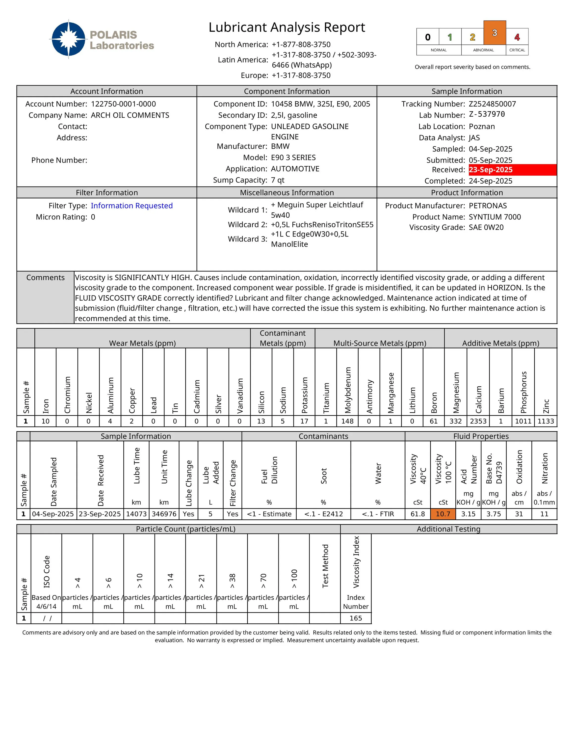 Vorherige Analyse: Petronas Syntium DM 0W-30 - BMW E90 325i N52 - 12.251km